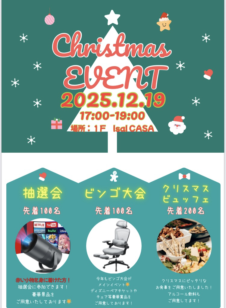 IsaI AkasakA クリスマスイベントを開催いたします🎄